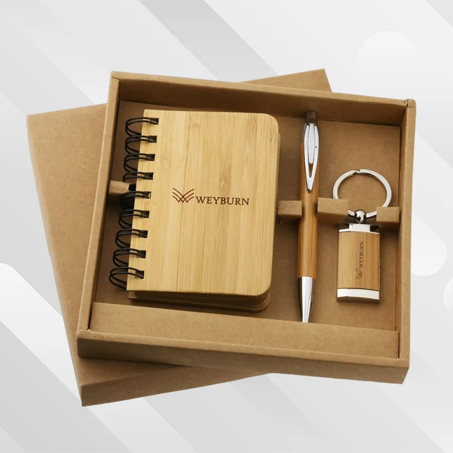 دفتر الملاحظات الخيزران، القلم وحلقة المفاتيح، مصنوع من الخيزران، مادة مستدامة وصديقة للبيئة، القلم مصنوع من مادة صلبة ومقاومة للخدش، حلقة المفاتيح مصنوعة من مادة متينة ومقاومة للتآكل.