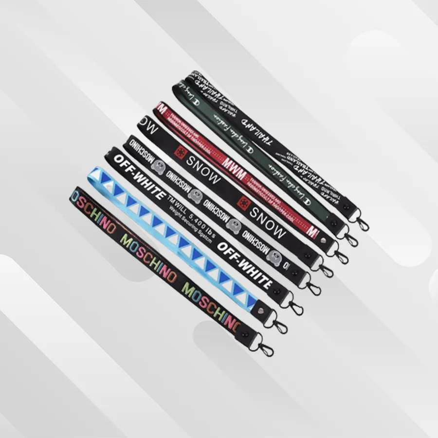 أشرطة التعليق الخاصة بنا مصنوعة من مواد عالية الجودة وتأتي في مجموعة متنوعة من الألوان والتصاميم. يمكنك تخصيصها باسمك أو شعارك أو أي رسالة أخرى تريدها.